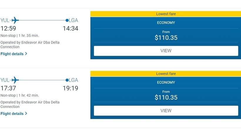 Больше всего рейсов выполняется компанией Air Canada. На протяжении дня есть 15 рейсов. Первый — в 08:30, а последний — в 20:00. Интервал между рейсами составляет примерно час-полтора. Посадка проводится в аэропортах Ла Гуардия и Ньюарк Либерти (пожалуйста, уточняйте при покупке билета, в каком аэропорту будет посадка).