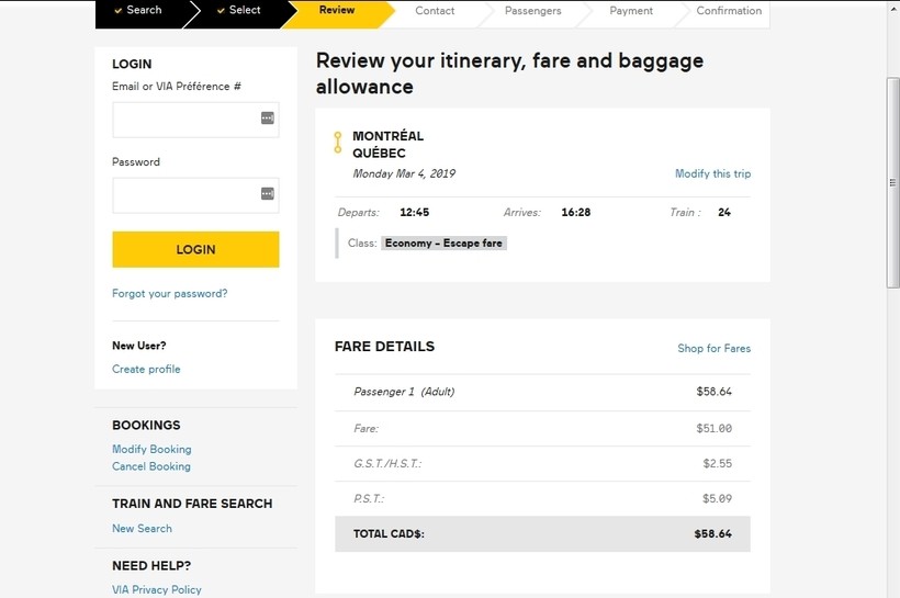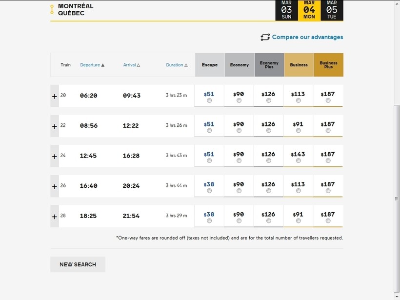 Из Монреаля есть поезда до Квебека, идут они без пересадок, в среднем 3 часа 40 минут.