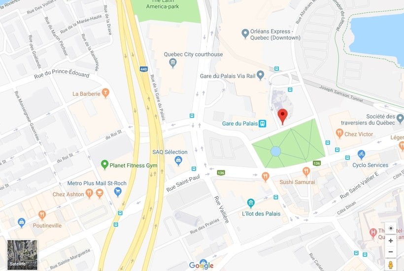 Выходить нужно на станции Гар дю Пале (там ж/д и автобусный вокзал Квебека).