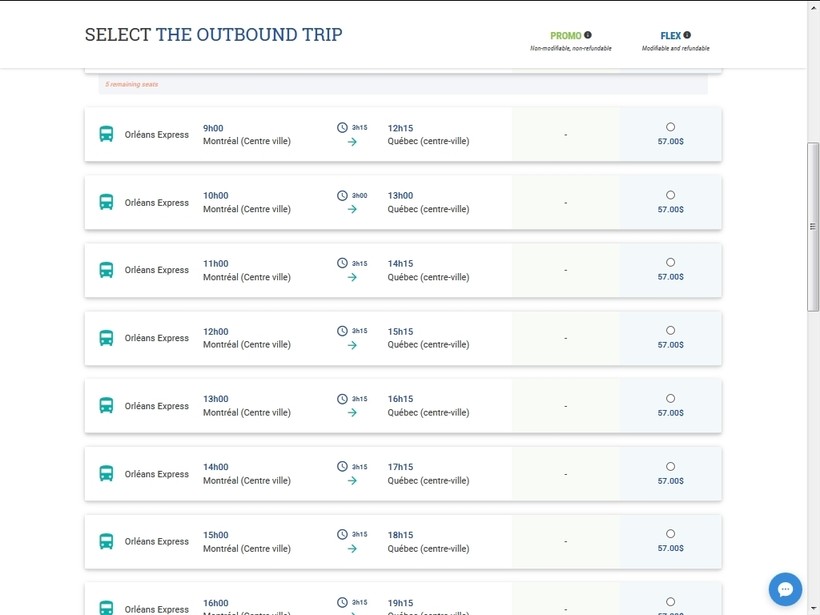 У перевозчика «Орлеан Экспресс» есть очень востребованный маршрут Монреаль — Квебек. Уходят автобусы каждый час с 8 утра до 11 вечера.