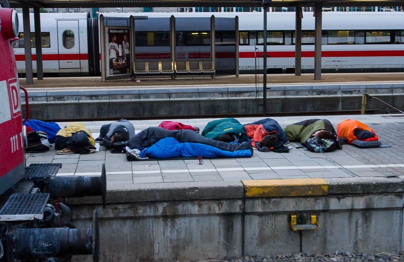Нет, это не немецкие бомжи :). Скорее всего, это студенты из Европы в долгом ожидании своего поезда. А это платформы скоростных поездов категории ICE. Здесь людей поменьше. Наверное, из-за того, что билеты на эти поезда стоят дороже:).