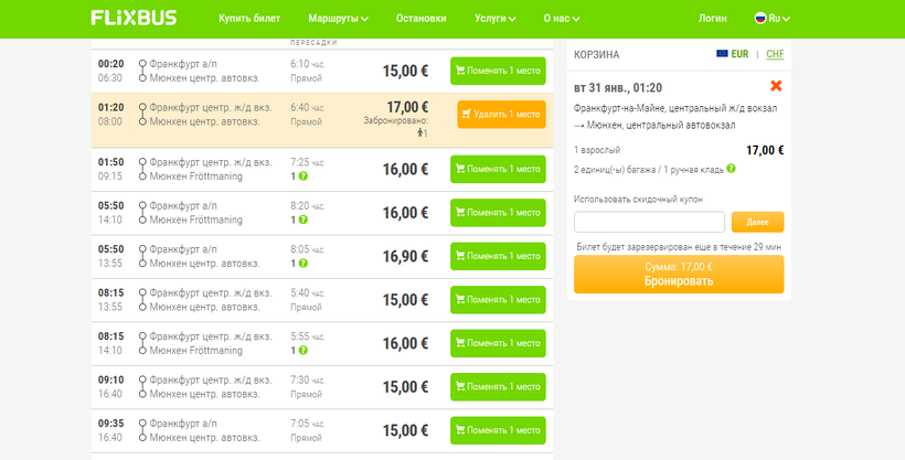 Оформить покупку удобнее всего на официальном сайте FlixBus, Eurolines.