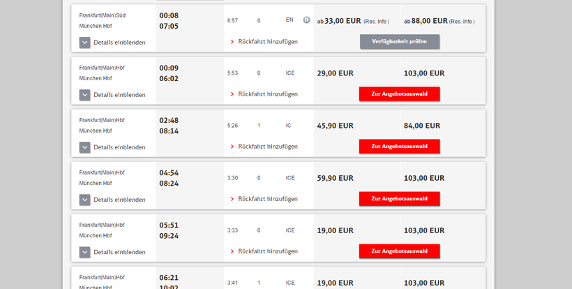В Германии я привыкла ездить на поездах. Это быстро и удобно, а количество составов просто огромное. Не исключение оказался и маршрут Франкфурт-Мюнхен. Поезда курсируют практически круглосуточно с интервалом не более полутора часов. В дороге нужно будет провести от 3,5 до 6 часов – время зависит от категории поезда. Почитать, какие составы считаются наиболее быстрыми, а какие – самыми недорогими, вы можете в этой статье.