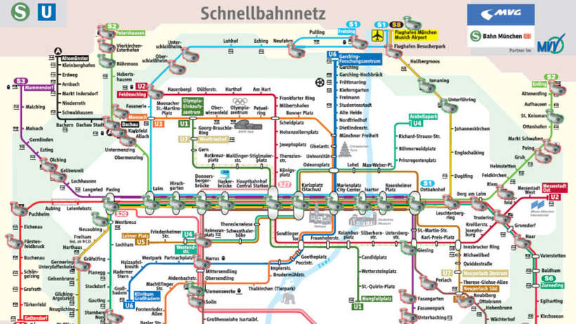 В этом и этом рассказах я Вам уже описывала здание этой станции, поэтому если захотите, то почитаете. Да, забыла Вам сказать, что в направлении Эрдинга отправляются пригородные поезда S-Bahn линии S-2 (подробнее об этих поездах читайте здесь). Вот вам схема движения всех линий S-Bahn в Мюнхене.