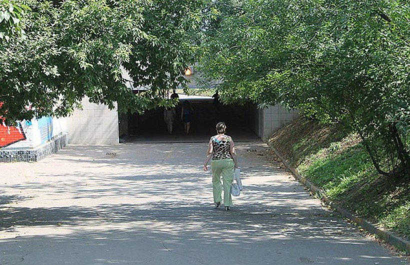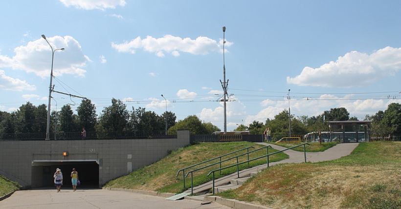 Выход из станции метро «Каширская» расположен в отдельном павильоне, не будет никакого подземного перехода, поэтому сразу через дверь выходите на улицу. Выйдя на улицу, вы должны вдали заметить верхушки башен, это будет дворец, собственно, туда вам и надо направляться. Перед собой вы увидите площадь, ее нужно будет пройти по переходу, который видно на фото.