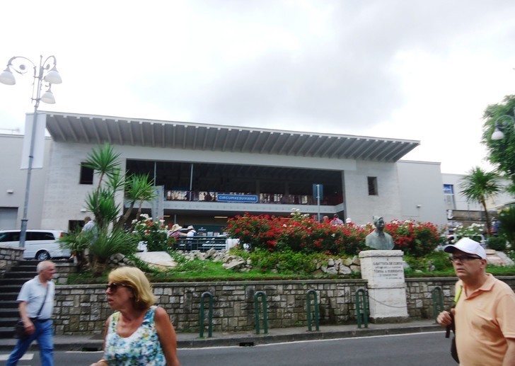 Окрестности Неаполя соединяет узкоколейная железная дорога со сложно произносимым названием Чиркумвезувиана, по которой регулярно курсирует электричка. Станция Сорренто является конечной, расположен по адресу Via Marziale.