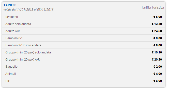 Стоимость билета для разных категорий пассажиров разная. Стандартный билет обойдется в 5,90 евро, за провоз багажа или животных придется доплатить дополнительно.