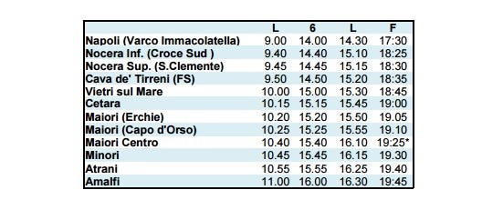На этой автостанции Вам необходимо найти автобус №5120 компании Sita, следующий в направлении Амальфи. Ежедневно в этом направлении с 05.55 до 21.30 отправляется 25 рейсов.