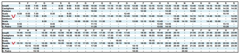 Прибыв в Амальфи на остановку возле пристани, мы пересели на автобус № 5110 той же компании Sita и за 25 минут добрались в Равелло. Автобусы по этому маршруту в направлении Равелло курсируют каждые полчаса с 06.30 утра до 0.55 ночи. Кстати, автобусы прибывают и отправляются строго по расписанию. Наш рейс загрузился за пару минут и отъехал от остановки. Такая быстрота наверное связана с небольшими размерами автостанции и большим количеством рейсов, которые от нее отправляются.