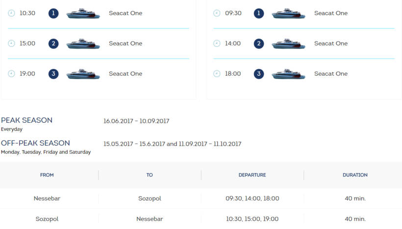 Из Созополя в Несебр катера отплывают три раза в день (10:30, 15:00 и 19:00). Вот расписание в Несебр обратно.