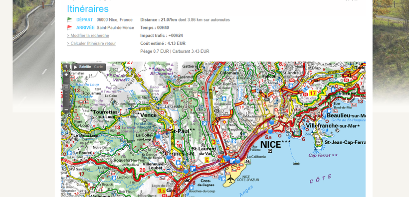 Наиболее быстрый маршрут выглядит следующим образом. Из Ниццы нужно выехать по дороге Рапид на автостраду А8 и придерживаться ее до Кань-Сюр-Мер. Здесь поверните направо на местную дорогу М336 и придерживайтесь ее до Сен-Поль-де-Ванса. В принципе, по автостраде нужно будет всего пару километров, поэтому можно объехать ее по бесплатной дороге, проходящей рядом со скоростной магистралью.
