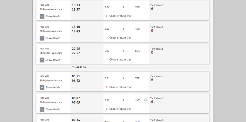 - Второй этап – от аэропорта Ниццы нужно доехать до Сен-Рафаэлея на автобусе №3003, он ходит раз в три часа и дорога занимает примерно чуть больше часа. Вот здесь можно посмотреть расписание этого маршрута во всех деталях.