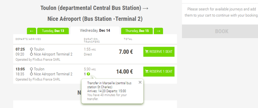 - рейсы от Flixbus отправляются в 07.25, с пересадкой - в 13.05.