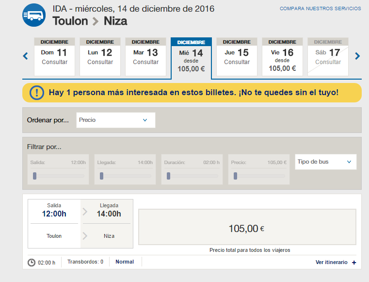 Ниже приведена информация о том, сколько часов вам потребуется, чтобы добраться от Тулона до Ниццы, а также приведена примерная стоимость проезда (средняя цена билета) на том или ином виде транспорта.