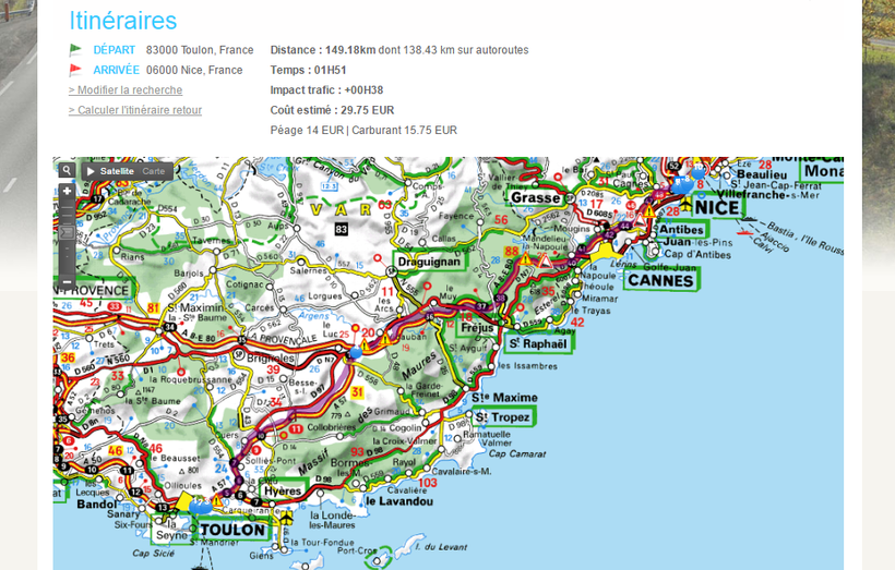 За такую поездку из Тулона в Ниццу плюс расходы на все топливо по дороге придется заплатить около 30 евро.