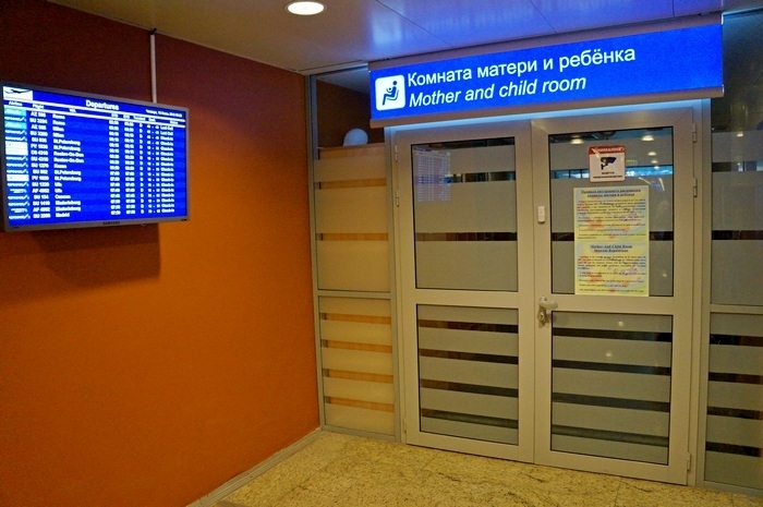 Несмотря на то, что терминал не особо комфортабельный для пассажиров из-за своих размеров, в нем есть комната «Матери и ребенка». Для меня это было на руку, так как я могла свободно переодеть и накормить ребенка. Хочу подметить, что в комнату пускают только мать с ребенком до 7 лет. Чтобы попасть в комнату, нужно предъявить следующие документы: