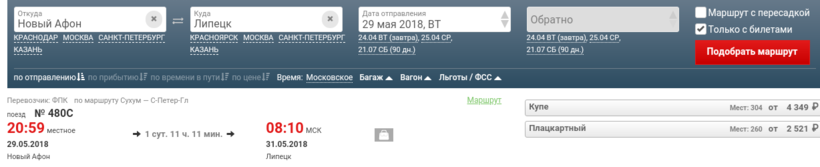 На нем можно доехать из Нового Афона в Липецк, это займет 1,5 суток. На всякий случай покажу, где расположен вокзал в Новом Афоне: