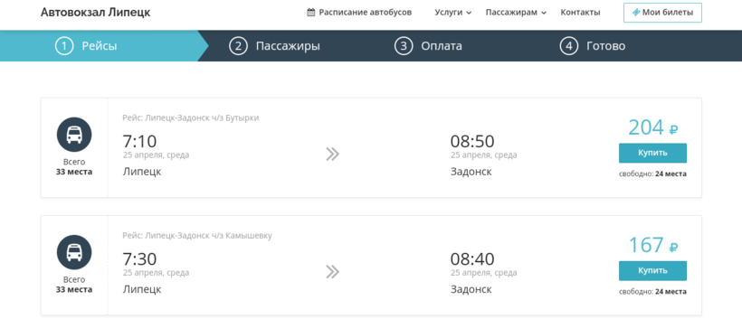 - билет в на автобус в Задонск можно приобрести в кассе или на сайте автовокзала. Обычно билеты заранее не покупают, их можно взять перед отправкой автобуса.
