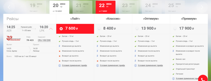 - билет на самолет продается на сайте авиакомпании «Руслайн»;