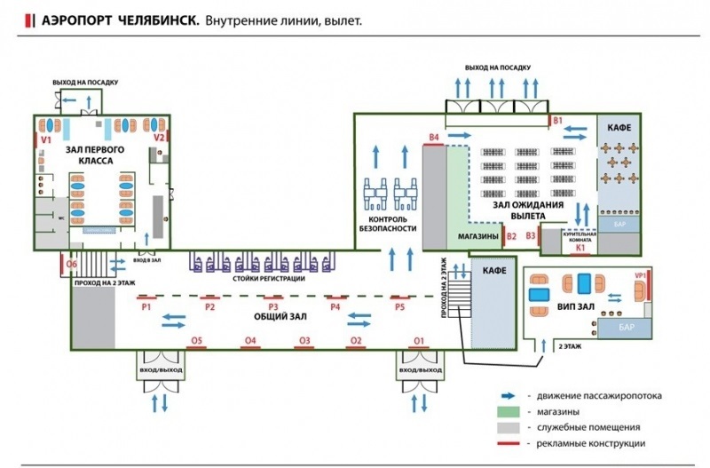 Залы прилёта и вылета в этом аэропорту — небо и земля! Зал прилёта годится для проживающих в Челябинске, чтобы элементарно забрать вещи и вылететь, а вот если вы захотите перекусить или купить сувениров родственникам, вам нужно в зону вылета или общий зал.