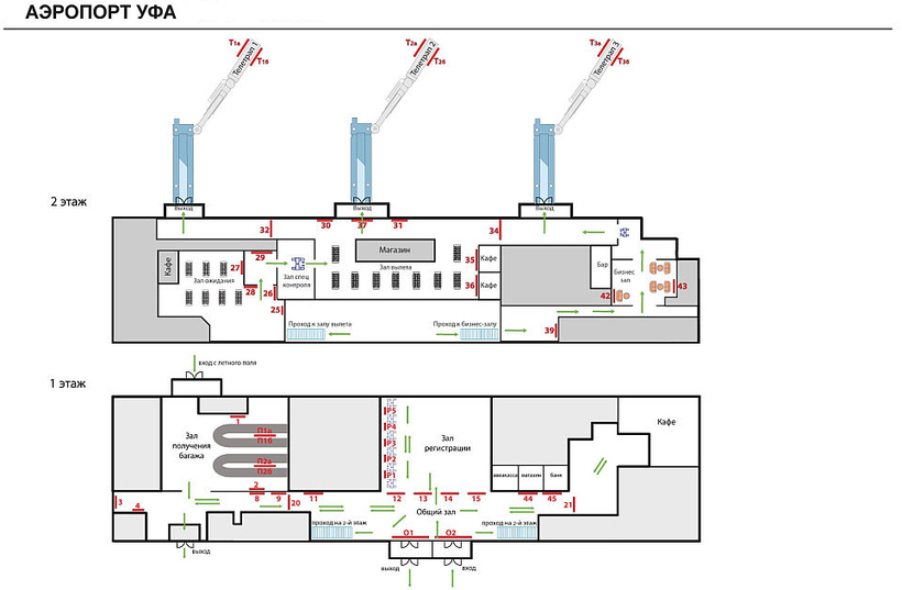 Если планируется провести некоторое время в аэропорту, я бы посоветовала именно его: много сидячих мест, есть несколько магазинов и даже специальное место для курения! При нас тут располагалось 5 кафе на выбор голодных путешественников и неплохой вид на г. Уфу, также у аэропорта есть место, где можно немного прогуляться:)