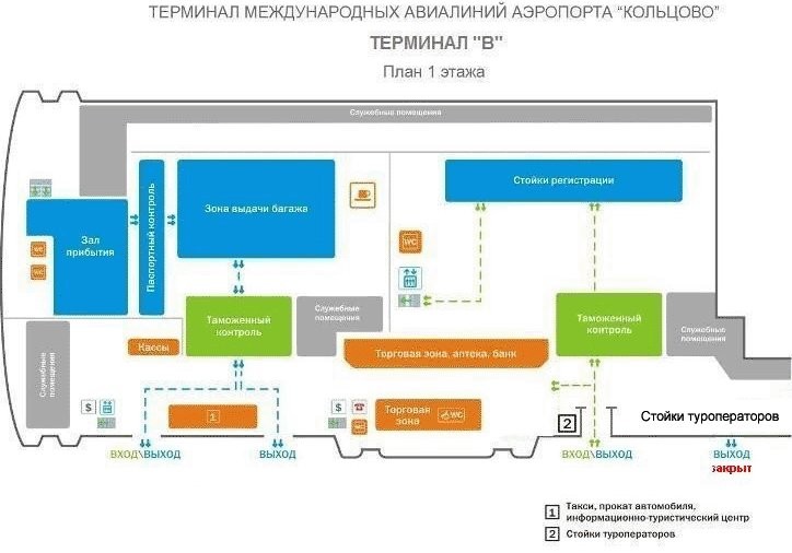 Я заказала билет, на данном сайте очень удобно и дешево, выбрала маршрут и сайт мне выдал в порядки возрастания цены на билет, быстро оформила и без всякой мороки. Прилетели мы в аэропорт Кольцово, находится он всего в 15 км от Свердловска. Нужно сказать, аэропорт очень красивый - большие залы ожидания. Осуществляется тщательный контроль, для Вашей безопасности. Аэропорт Кольцово состоит из трех терминалов:- Терминал - А