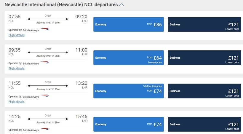 Расписание разнится, но каждый день есть 5-6 рейсов. Перелет длится 1 час 25 минут, и все самолеты приземляются в аэропорту Хитроу.