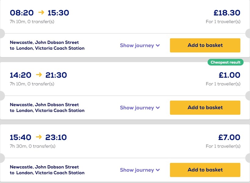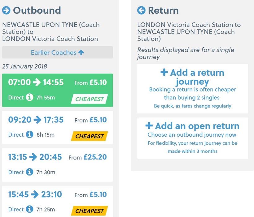 Ниже приведена информация о том, сколько часов вам потребуется, чтобы добраться от Ньюкасла до Ландона, а также приведена примерная стоимость проезда (средняя цена билета) на том или ином виде транспорта.