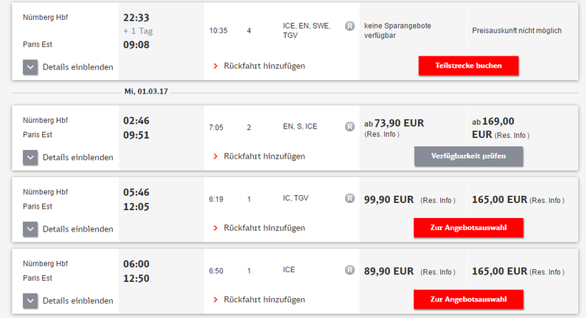 Из главного железнодорожного вокзала Нюрнберга в Париж отправляется ряд поездов в основном категорий ICE, о них читайте тут.