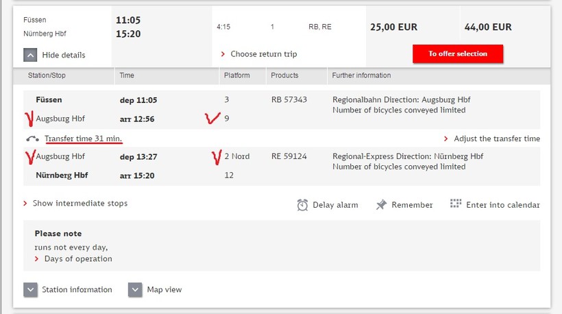 Мы с мужем брали билеты с пересадкой в Аугсбурге.