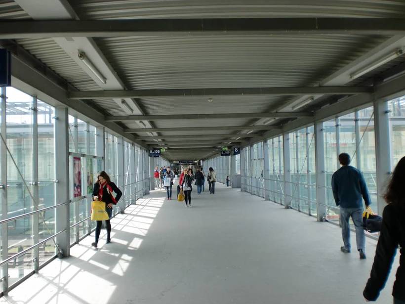 Со зданием вокзала они соединены вот такими стеклянными переходами.
