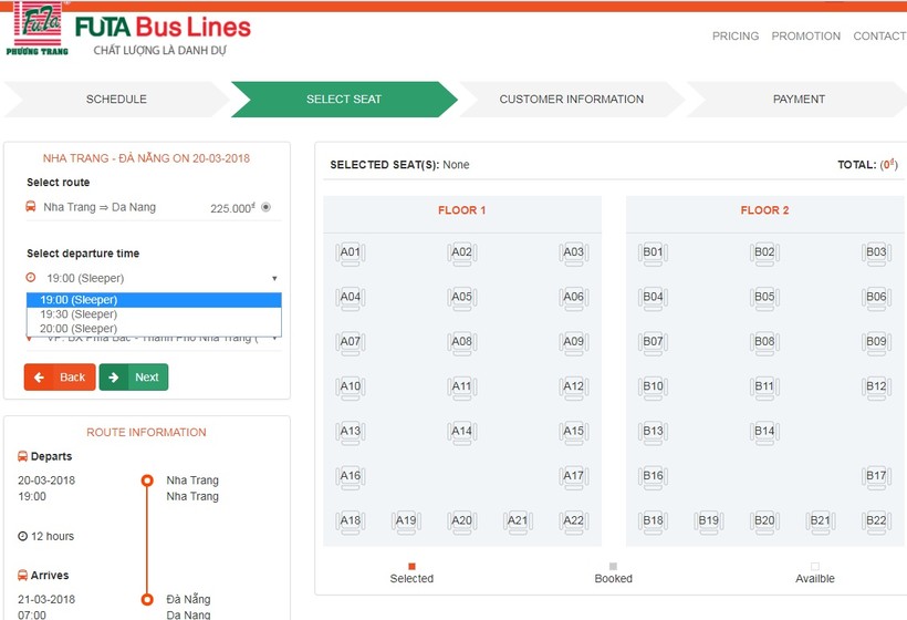 Есть еще один перевозчик, автобусы которого ездят от автовокзала до автовокзала, но только из Нячанга можно доехать в Дананг, а затем, прямо на автовокзале, пересесть на желтый автобус №1 в Хойан. Это рейсы перевозчика Futabus отправляются несколько раз в день отсюда: