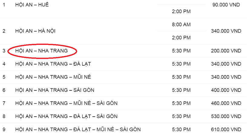 Адрес агентства в Хойане: 02 Thái Phiên, автобус в Нячанг приезжает на 10 Hùng Vương.