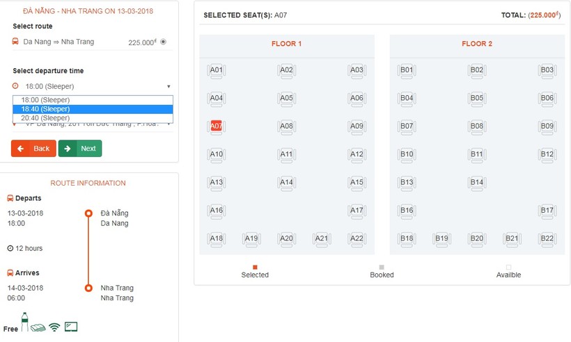 Транспорт во Вьетнаме ездит очень медленно, 50 км/ч за городом - предел, поэтому переезд в Нячанг занимает 12 часов. Теперь о расписании. Автобус агентства The Sinh Tourist отправляется раз в день, в 18:15: