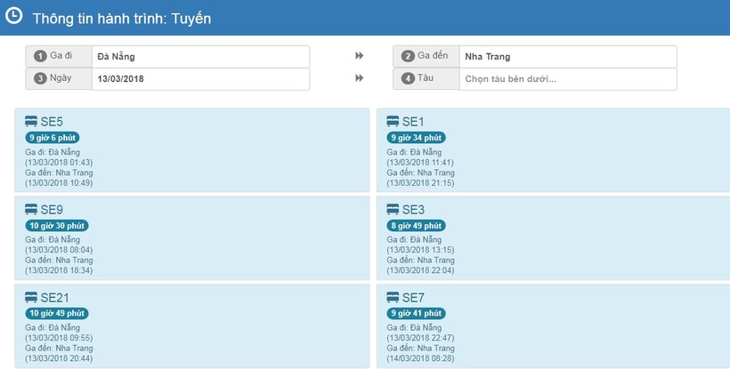 Стоимость билета зависит от типа поезда и вагона. Составы формируются из вагонов с деревянными лавочками, вагонов с креслами и спальных. Так самые дешевые места стоят 224 тыс. донг (8 евро) в вагон с лавочками, но в скором поезде они уже будут стоить 360 тыс. донг (13 евро). Самые дорогие места - в спальных вагонах, такие билеты стоят от 340-700 тыс. донг (12-25 евро).