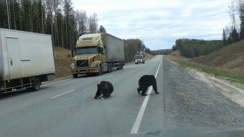 На окраинах Ханты-Мансийска медведи в любой момент могут выйти на дорогу :).