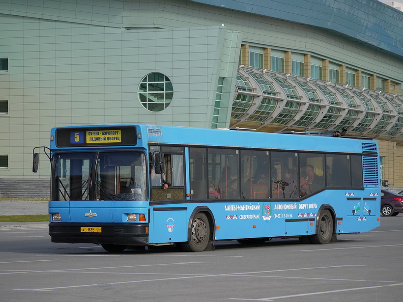 В пару сотне метров от здания терминала расположена автобусная остановка, от которой в направлении Ханты-Мансийска отправляется общественный транспорт: