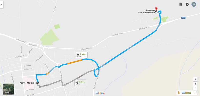 Автомобильный маршрут из аэропорта в Ханты-Мансийск