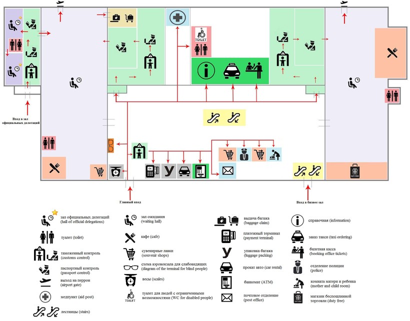 Все пассажирские рейсы осуществляются через новый Терминал А, разделенный на внуртироссийский и международный секторы.