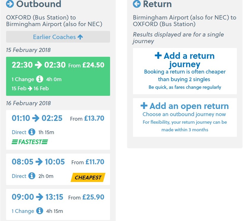 Так, у National Express есть прямые рейсы в аэропорт Бирмингема, 7,6-12 фунтов, 2 часа времени - и вы на месте: