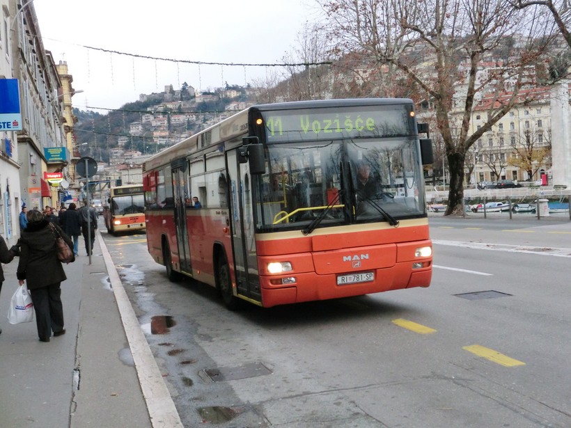 Тем кому читать тут неудобно в помощь официальный сайт с расписанием соответствующего автобуса. Отправляется автобус от остановки, расположенной напротив здания железнодорожного вокзала в Риеке, это вот тут: