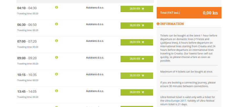 - Цена билета на автобус Autotrans составляет 28 кун (приблизительно 3,7 евро).