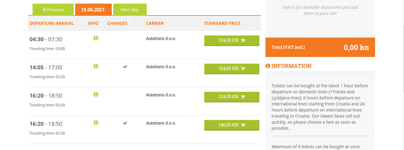 - Цена билета на рейс Autotrans стартует от 124 кун (чуть меньше 17 евро )