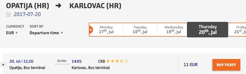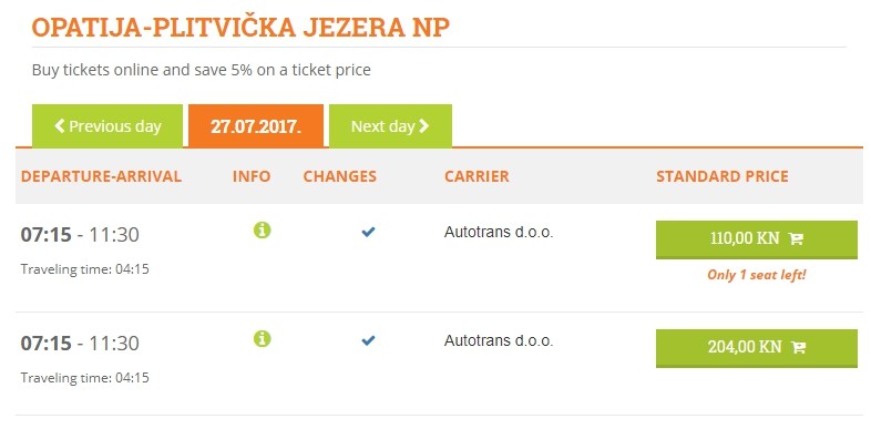 Если хорошо покопаться в сети, то можно найти билеты и за 110 хорватских кун (15 евро), ведь именно в Интернет перевозчики выкладывают акционные предложения и скидки. Если покупать через кассу, то получится несколько дороже.