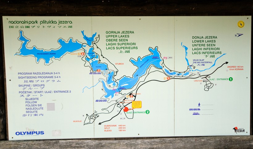 - парк имеет два входа - верхний и нижний (ST1 и ST2). Наиболее интересные маршруты начинаются, как правило, с другого. Там есть парковки для машин, однако они платные — от 8 хорватских кун в час (1 евро);