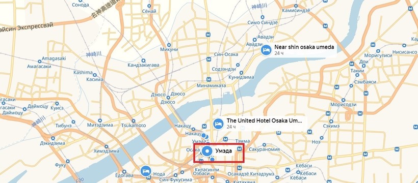 Лично я вышла в городе Осака возле станции метро «Умэда» (смотрите скриншот). Здесь я была примерно в семь часов утра.