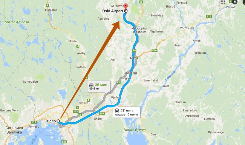 Вот что в Осло не комфортно - аэропорт Гардермуэн расположен в 45 километрах от города.