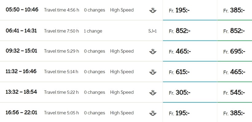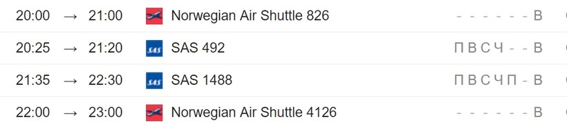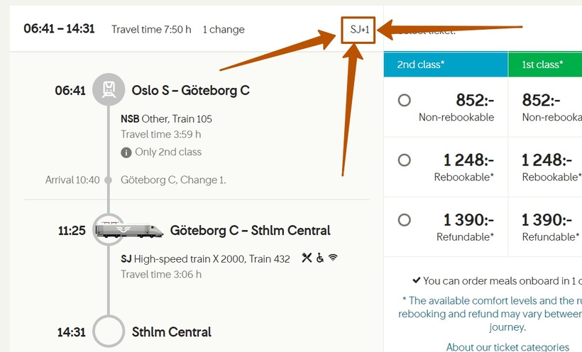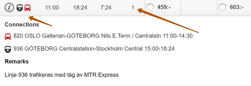 Нужно всегда обращать внимание есть пересадка или нет. Некоторые рейсы идут до Гётеборга, а оттуда в Стокгольм нужно доезжать электричкой. Значки будут такими.