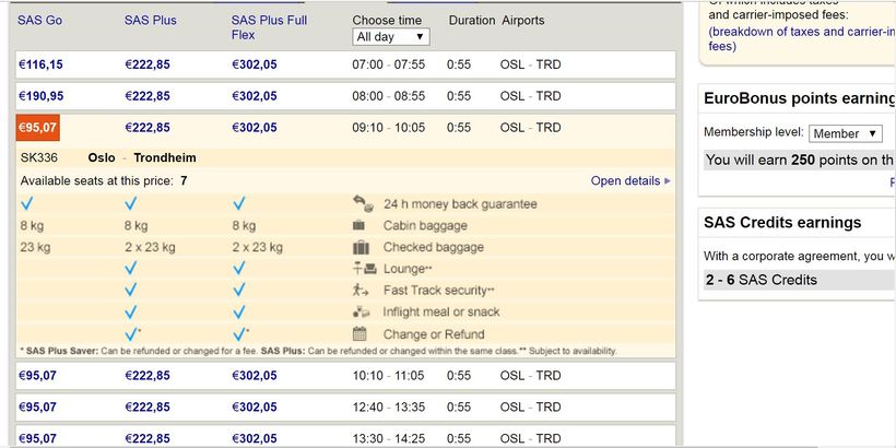 - Цена на рейс SAS стартует от суммы примерно в 95 евро.