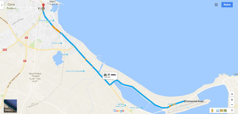 И перед посадкой изучите маршрут, так как водитель может повезти Вас в Сусс по очень длинному маршруту. Да, и если Вы остались довольны поездкой, то оставьте водителю 1 или 2 динара в качестве чаевых. Кстати, мы с мужем в Суссе пользовались услугами такси для поездки на экскурсию. Проблему языкового барьера водитель решил очень просто. Перед поездкой он позвонил своей русскоговорящей знакомой и через нее мы обсудили все условия поездки.